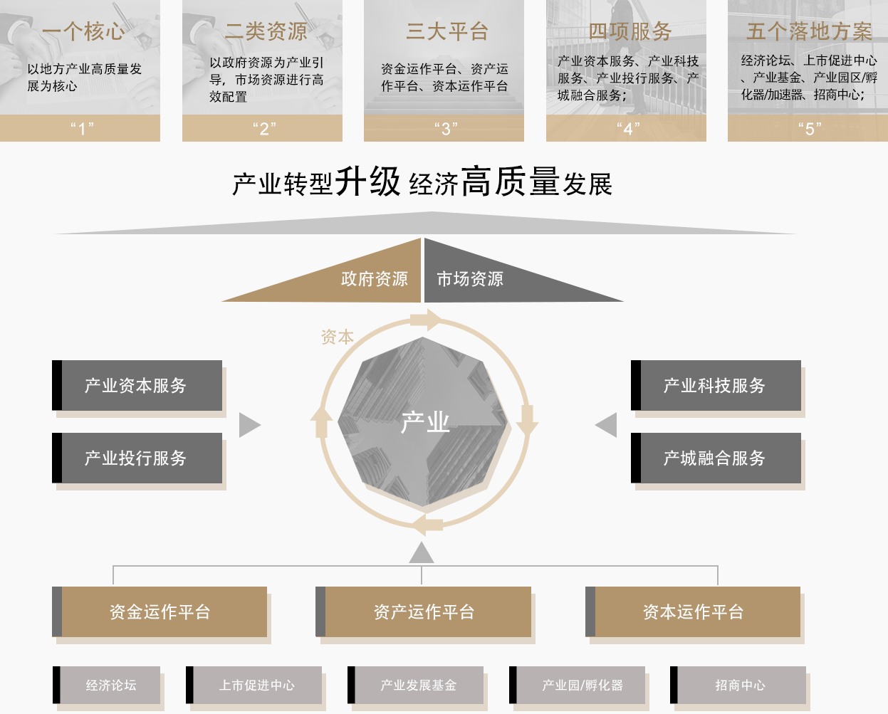 優(yōu)勢(shì)資本為地方政府提供“12345”資本整體解決方案,以資本助力地方產(chǎn)業(yè)轉(zhuǎn)型升級(jí),推動(dòng)區(qū)域經(jīng)濟(jì)高質(zhì)量發(fā)展。