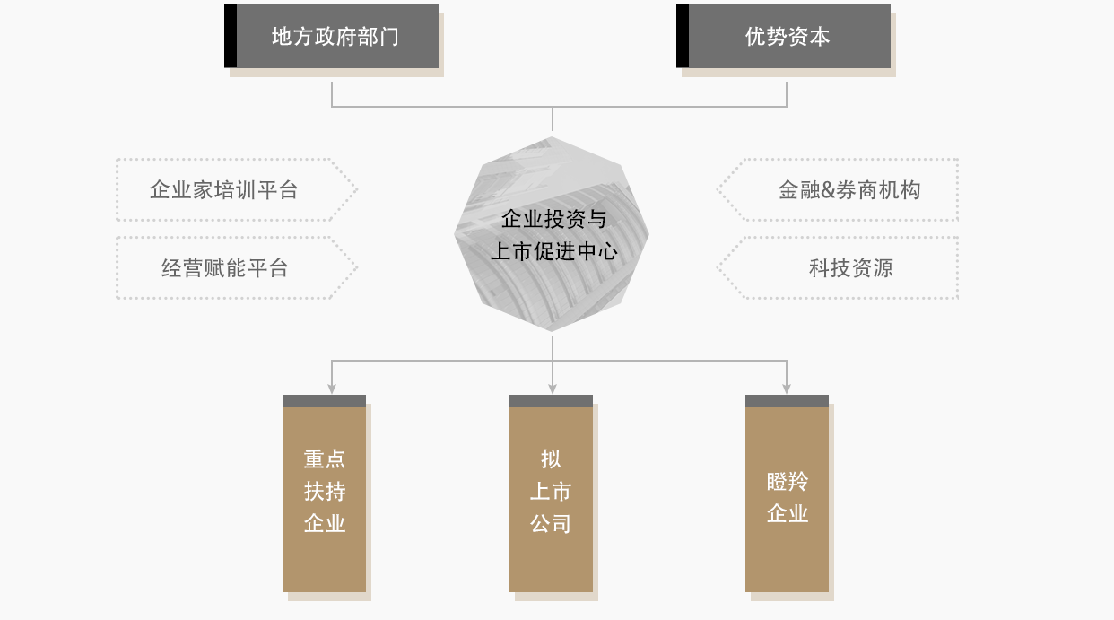 優(yōu)勢資本與地方政府合作成立的平臺,旨在給當(dāng)?shù)仄髽I(yè)提供包括資本培訓(xùn)、上市顧問服務(wù)、私募股權(quán)融資等金融與賦能服務(wù),為企業(yè)導(dǎo)入產(chǎn)業(yè)資源、科技資源,借助資本的力量進(jìn)行產(chǎn)業(yè)整合,推動具有企業(yè)家精神、經(jīng)營基礎(chǔ)良好的企業(yè)實現(xiàn)跨越式發(fā)展,并進(jìn)入資本市場。