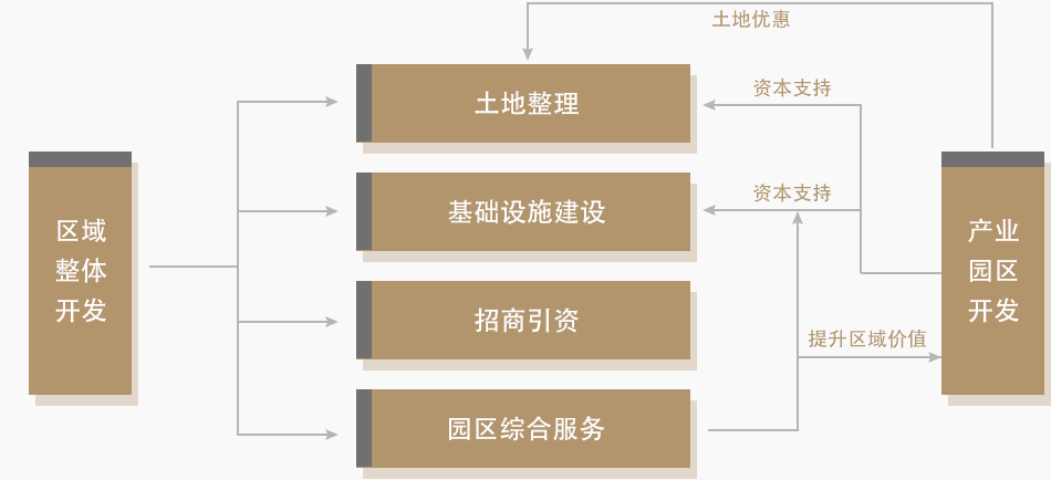優(yōu)勢資本整合園區(qū)開發(fā)資源和產(chǎn)業(yè)資源為地方提供“園區(qū)開發(fā)+園區(qū)招商+園區(qū)運營”整體解決方案,政府在前期零投入的情況下,快速實現(xiàn)產(chǎn)業(yè)引進(jìn)和園區(qū)運作,隨著園區(qū)不斷成熟,入園企業(yè)的數(shù)量和投資將不斷增加,為政府帶來增量財政收入和GDP,并解決地方人口的就業(yè)問題。